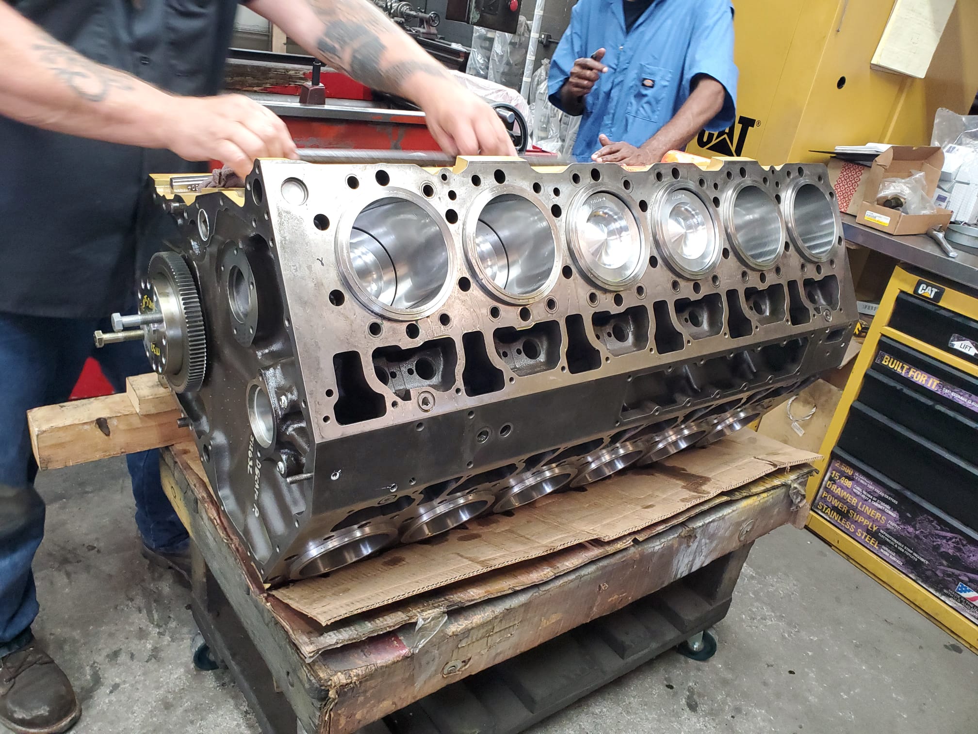 Full-service diesel engine block machining including boring, honing, decking, counterbore cutting, sleeving, and align honing for Caterpillar, Cummins, Detroit Diesel, and large industrial engines.